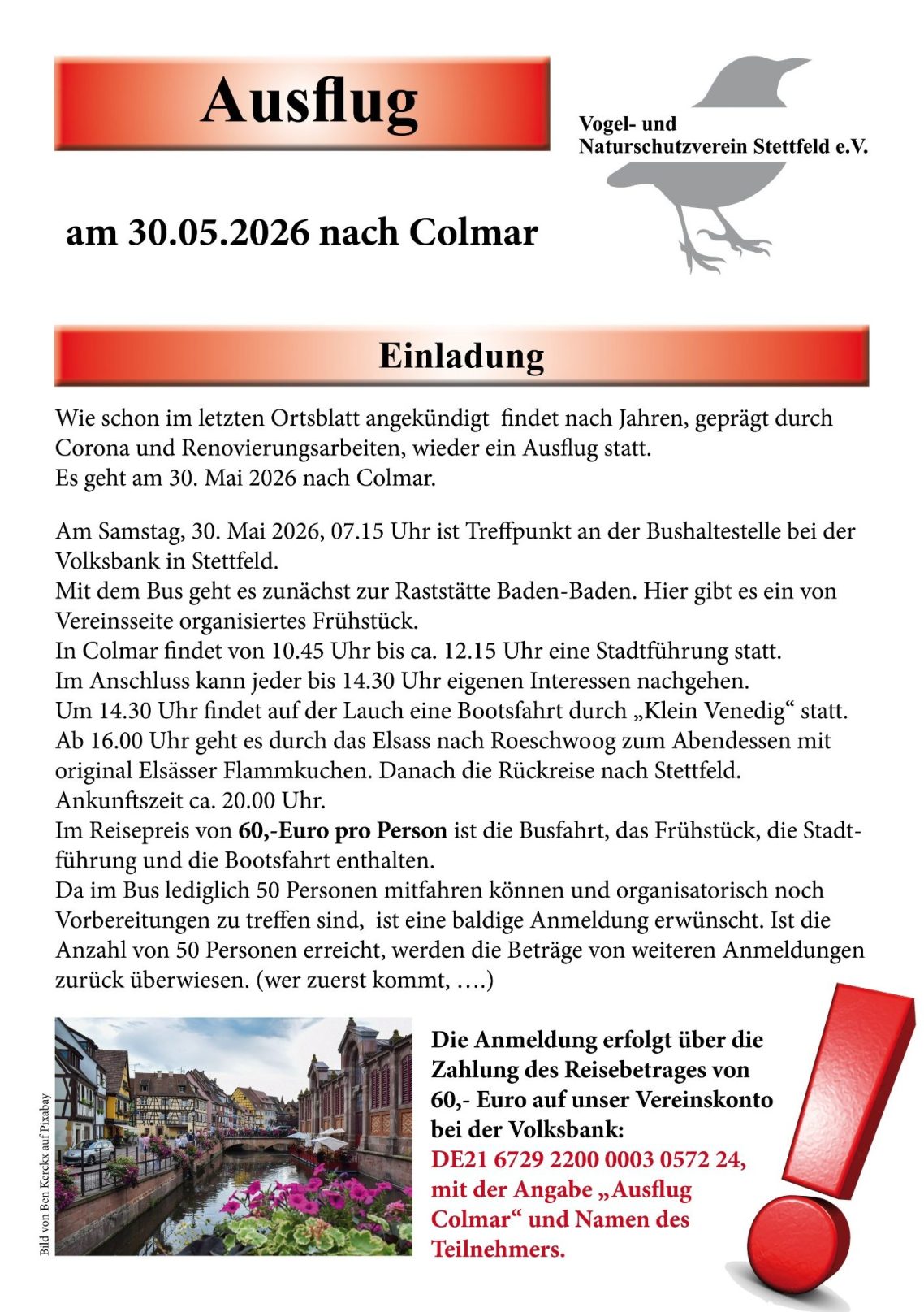 Ausflug nach Colmar am 30.05.2026